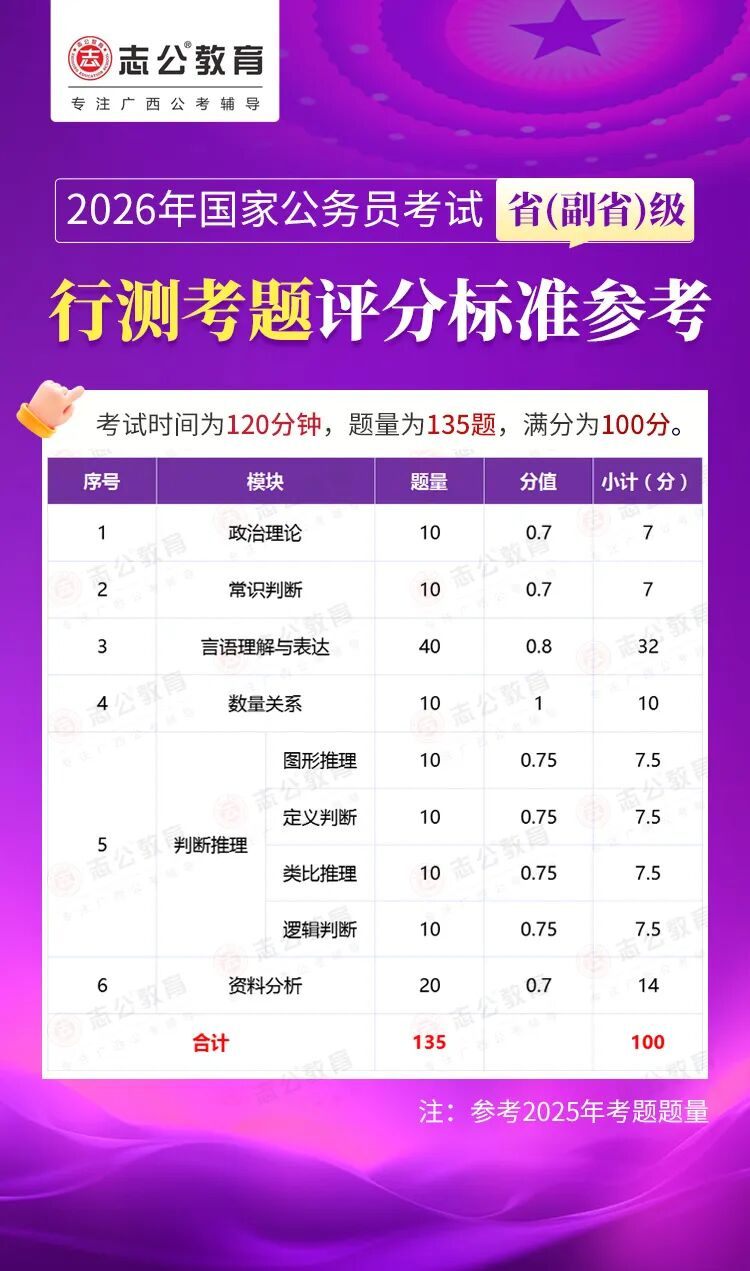 無論報名人數(shù)是否會增加,提升自身實力才是應對2026年國考的關(guān)鍵。行測作為國考公共科目筆試的核心模塊,不僅分值占比高(通常為 100 分),更是考生之間拉開分差的關(guān)鍵戰(zhàn)場。它并非單純考查知識儲備,而是通過言語理解、判斷推理、數(shù)量關(guān)系、資料分析、常識判斷、政治理論六大板塊,綜合評估考生的信息處理速度、邏輯思維能力、應急決策水平等綜合素質(zhì)。