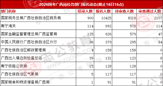 今天是報名第二天,小伙伴可要抓住此次上/岸機會啦!來看看廣西今天的報名數(shù)據(jù)吧。截止10月16日下午16:00,已經有13116名考生報名,最熱崗220人報名!從各項數(shù)據(jù)來看,部分考生可能還持觀望態(tài)度。在接下來的報名時間里,可能會迎來報名人數(shù)大幅增長的情況,大家可以密切關注。