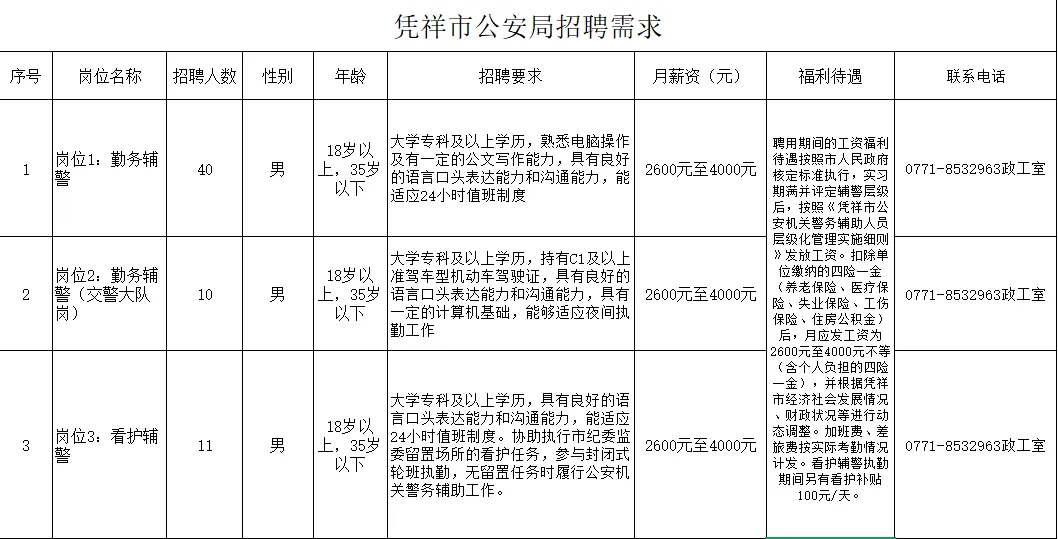 通過(guò)資格審查的人員,憑祥市公安局將統(tǒng)一進(jìn)行筆試、體能測(cè)試及面試。