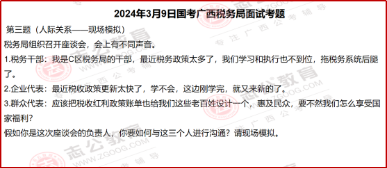 2??實務(wù)場景的解決能力座談會模擬題中,干部、企業(yè)、群眾的訴求各有不同:干部需要 “學(xué)習(xí)減負的方法”,企業(yè)需要 “政策傳遞的高效渠道”,群眾需要 “紅利賬單的普及”,考生的回應(yīng)不能只說 “我會解決”,而要給出稅務(wù)工作中實際可用的辦法(比如給干部開 “政策精簡小課堂”,給企業(yè)推 “政策精準(zhǔn)推送系統(tǒng)”)。