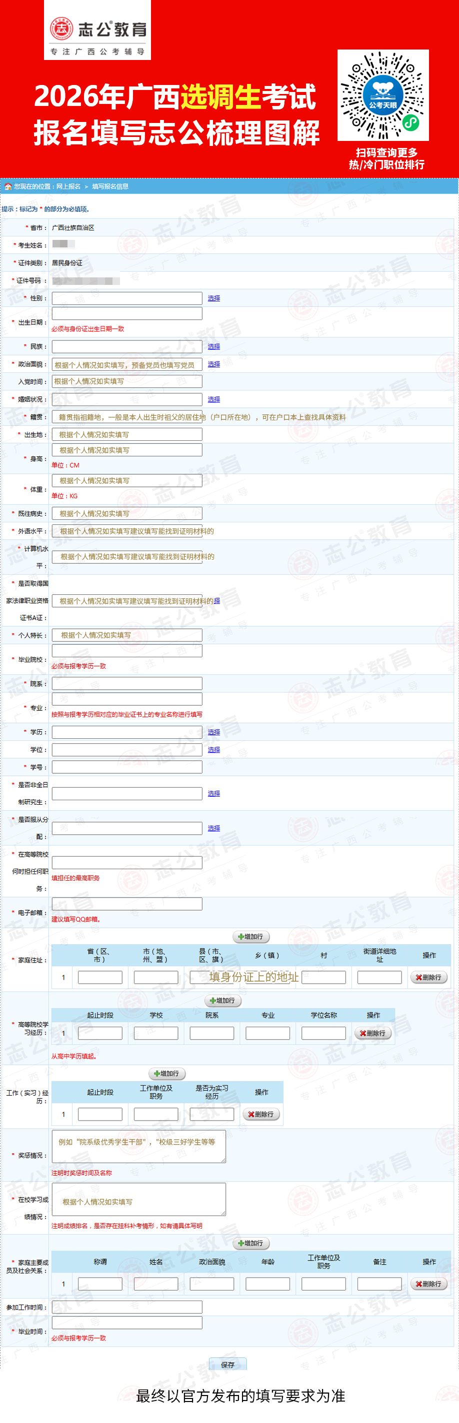 2026年廣西選調(diào)生報(bào)名信息填寫參考