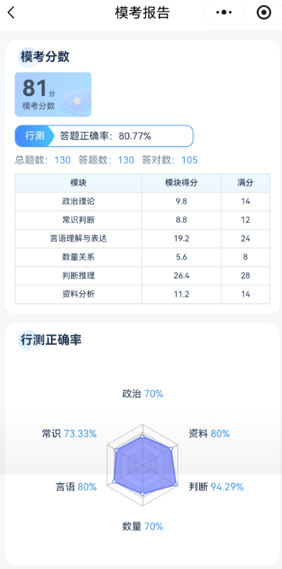 ?智能個(gè)性化報(bào)告:考后自動(dòng)生成答題分析,精準(zhǔn)標(biāo)注薄弱模塊、正確率詳情,讓你清晰知道 “哪里會(huì)、哪里差”。