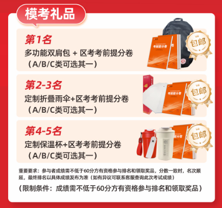 ??第1名:多功能雙肩包+區(qū)考考前提分卷(A/B/C 類(lèi)任選,包郵)