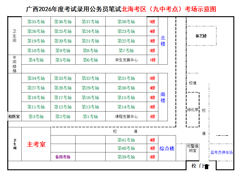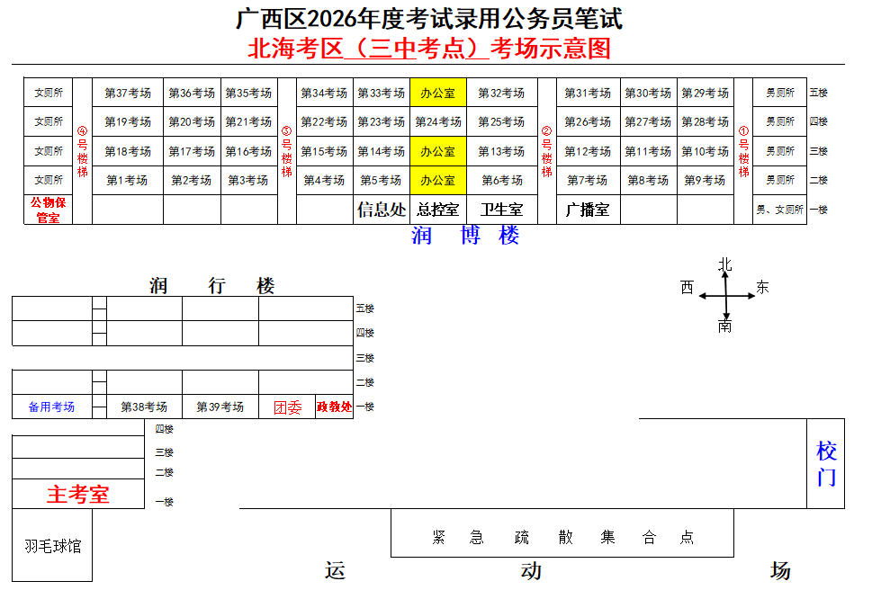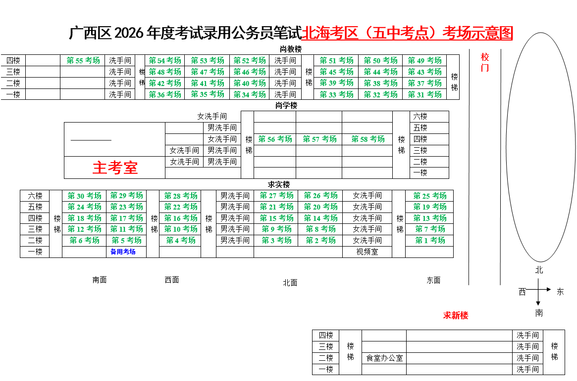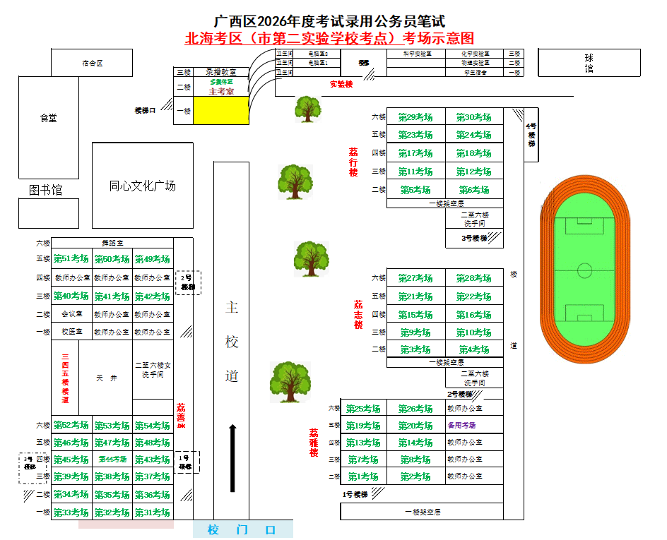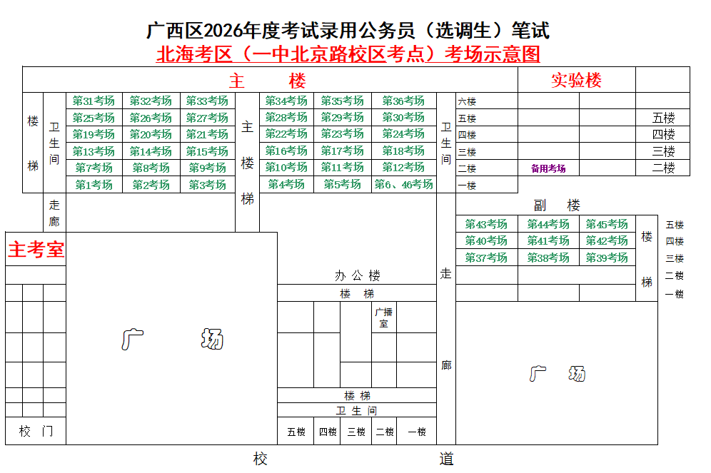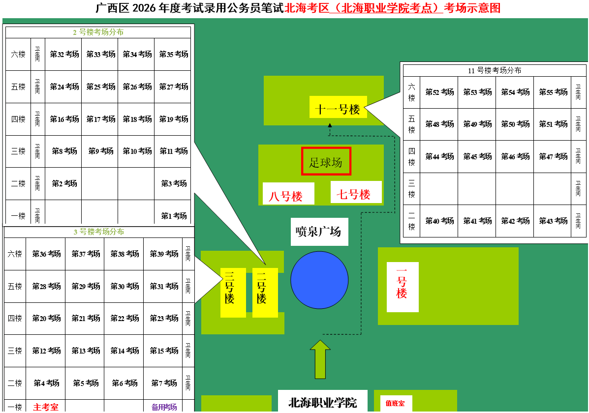 北??紖^(qū)共設(shè)置6個考點,具體考點考場布置分別如下: