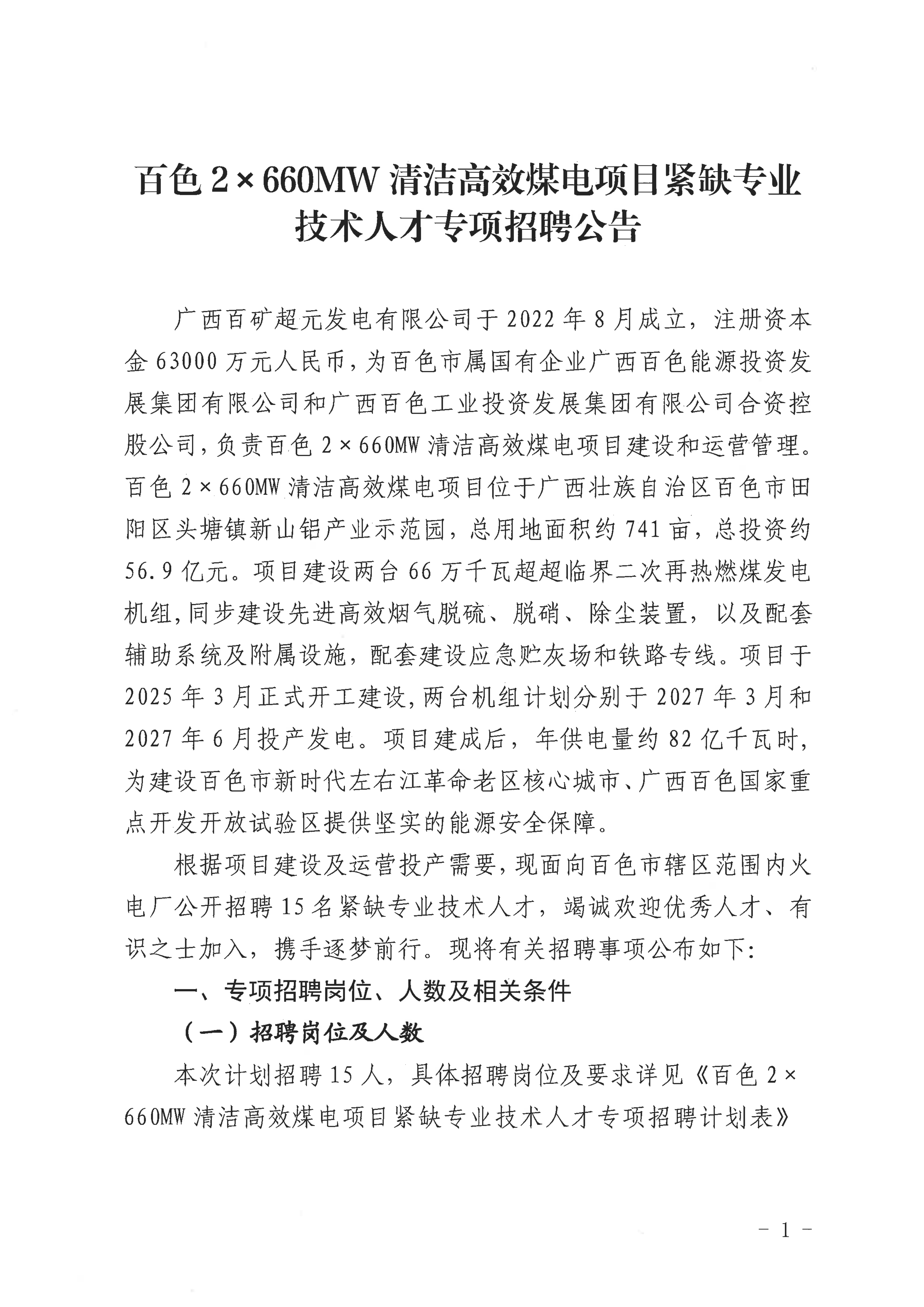 原文標題:2026年廣西百礦超元發(fā)電有限公司清潔高效煤電項目緊缺專業(yè)技術人才專項招聘公告