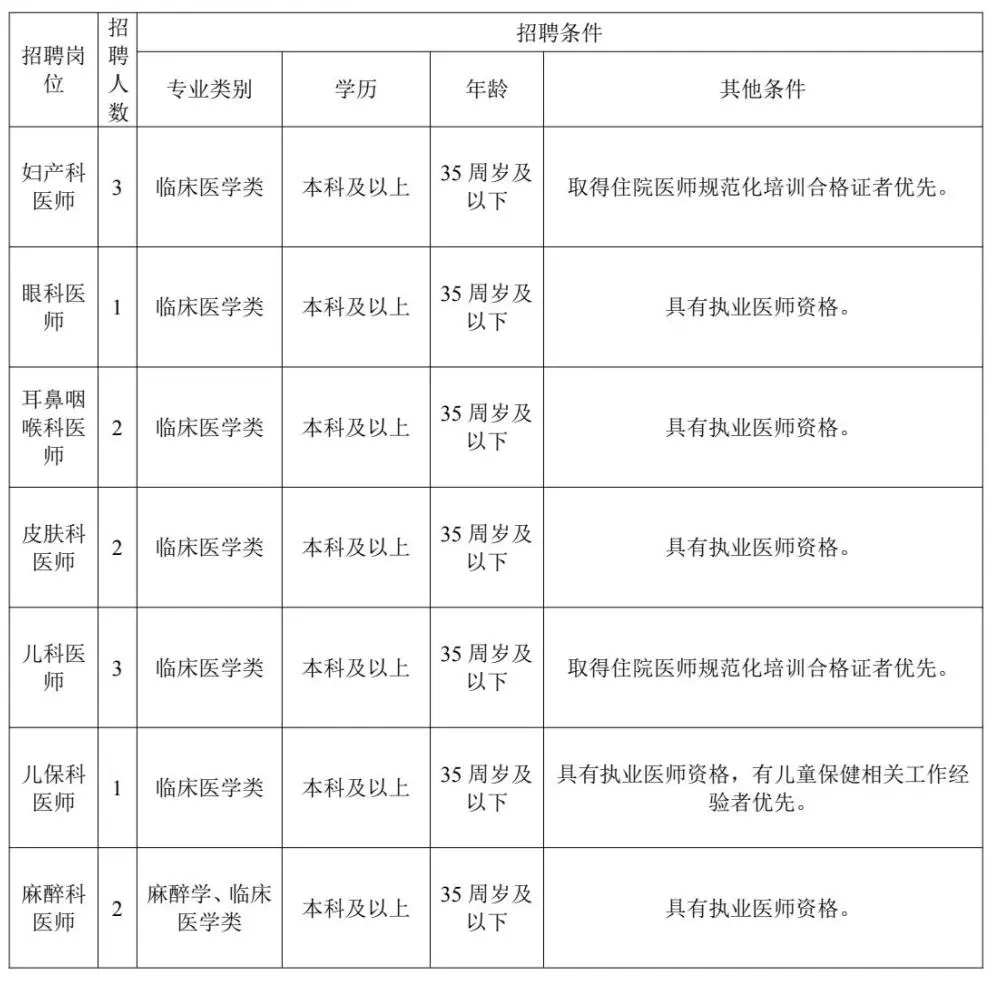 全年長期招聘(我院將根據(jù)報名情況分批次安排面試,具體以醫(yī)院通知為準),招滿即止。